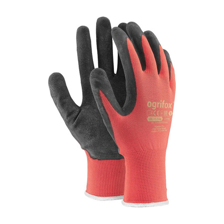 Rękawice ochronne wykonane z poliestru, powlekane lateksem.